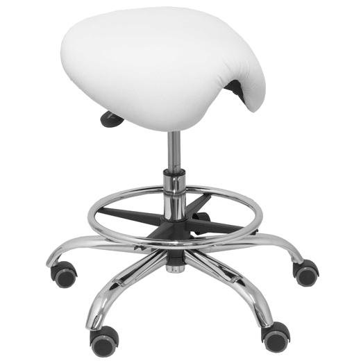PIQUERAS Y CRESPO TABURETE ALATOZ GIRATORIO ANATÓMICO BASE CROMADA TAPIZADO SIMILPIEL BLANCO