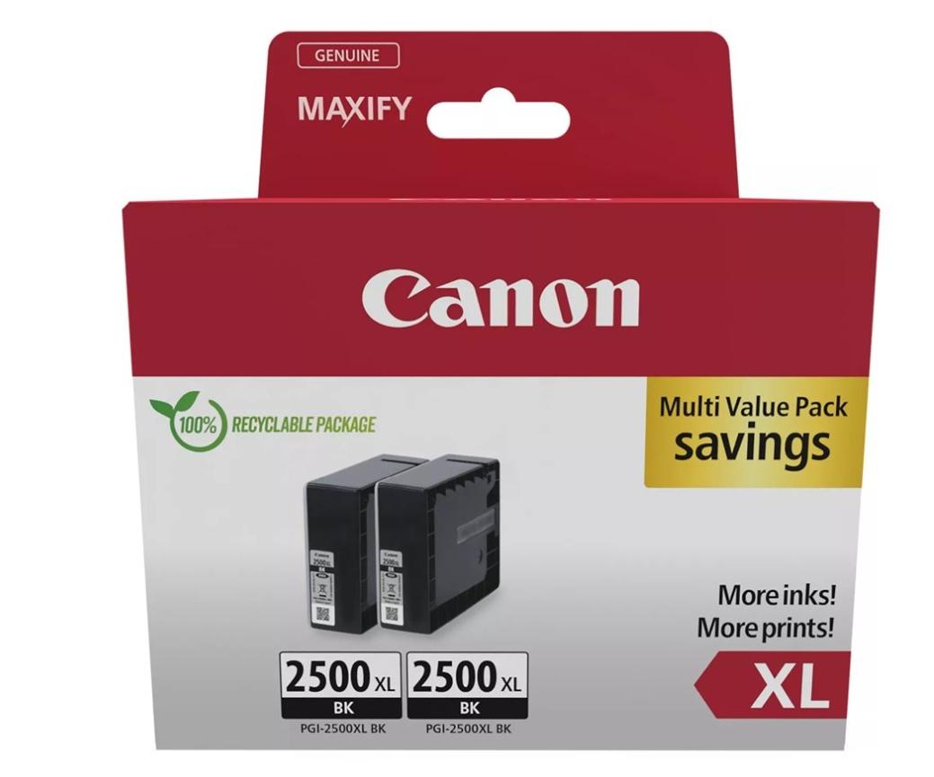CANON TINTA TWIN PACK NEGRO PARA MAXIFY IB 4050/4150 – MB 5150/5155/5350/5450 – PGI 2500XLBK (PACK 2)